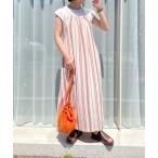 キーワード:ワンピース ストライプ ノースリーブ フレア ロング