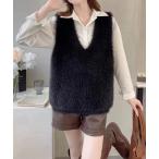 商品名:【lulufa】フェザーニットルーズ Vネックベスト/韓国 Y2K レイヤード 秋冬(CZ)