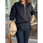 キーワード:ブラウス シャツ レディース ノーカラー 長袖 無地