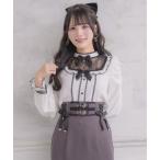 キーワード:ブラウス シャツ レディース スタンドカラー ビジュー フリル リボン レース 長袖 無地 ガーリー デート フェミニン