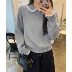 キーワード:ニット セーター レディース クルーネック レース 長袖 無地 ガーリー 韓国ファッション 大人カジュアル