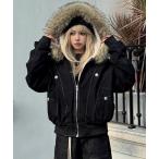 商品名:ファー付きフード ミリタリーブルゾン/ミリタリージャケット 韓国ファッション アウター 防寒アウター 秋冬(CZ)
