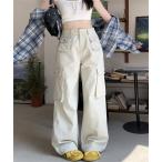 キーワード:カーゴパンツ レディース ハイウエスト フルレングス ワイドパンツ 無地