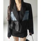 参考商品名:デニムフリルドッキングショートテーラードジャケット /denim frill docking short tailored jacket