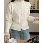 商品名:シアー襟&袖ケーブル編みニットカーディガン