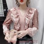シャツ トップス ブラウス ベロアシャツ 長袖 レディース カットソー レース フリル ベロアトップス Vネック 春 秋 冬 通勤 OL フォーマル おしゃれ 着回し30代 40代 50代 フォーマル ブラウス レディース おしゃれ 長袖 レース シャツ トップス 着痩せ 通勤 新作 上品 大人 可愛い 通勤 OL 大人