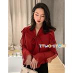ボウタイブラウス レディース フリルブラウス ブラウス レディース 長袖 トップス 春 秋 シアートップス シアーシャツ 大きいサイズ 3L 黒 赤 シャツブラウス