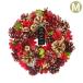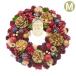 深みのある色合いのベロア生地と、繊細にきらめくゴールドが特徴のリース。<br>王族の衣装をイメージしたデザイン。色味の異なる金のパーツを組み合わせました。<br>【プレートの訳】<br>PROMENADE:さんぽ<br>Parmi fleurs:花たちに囲まれて<br>PETIT BONHEUR:小さな幸せ<br>LE JARDIN PLEIN DE COULEURS:色とりどりの花であふれる庭<br>TOUT PLEIN DE BONHEUR POUR DEMAIN:明日が素敵な日でありますように<br>LE JARDIN ENSOLEIL:ひだまりの庭<br><br>【サイズ】約幅235×奥行70×高さ235mm<br>【素材】天然素材・発泡スチロール・プラスチック・ポリエステル・木<br>【仕様】壁掛け用ひも付き、ボックス入り、全体にラメあり<br><br>※入荷時期および個体によって色、柄、サイズ、形状が多少異なる場合がございます。<br>※天然素材のため、1点ずつ色合い・風合いが異なります。<br>※ラメは素材の特性上、剥がれ・落ちが発生いたしますのでご了承ください。<br>※素材の特性上、輸送時にパーツ剥がれや変形等がある場合がございます。接着剤等を使って補修して頂きますようお願いいたします。<br>※ボックスは商品を保護するためのものです。多少のシワや破れがございますのでご了承ください。