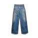 -商品説明-<br>・12.5ozナチュラルスラブルーズインディゴデニムを採用<br>・アイアン(鉄)製のオリジナルタックボタン<br>・オリジナルの銅製リベット<br>・ボタンフライ<br>・ヴィンテージライクなUSED加工<br>・ワイドストレート5ポケットジーンズ<br>*こちらの製品はウォッシュ加工済なのでジャストサイズをお選び下さい。<br>着用や洗濯を繰り返す事により多少伸縮や色落ちがあります。<br><br>-素材-<br>コットン100%<br><br>-サイズ-<br>28 (ウエスト75cm,股上25.3cm,ワタリ30.7cm,股下80cm,裾幅26cm) <br>29 (ウエスト77.5cm,股上25.6cm,ワタリ31.6cm,股下80cm,裾幅26.5cm) <br>30 (ウエスト80cm,股上25.9cm,ワタリ32.5cm,股下83cm,裾幅27cm) <br>31 (ウエスト82.5cm,股上26.2cm,ワタリ33.4cm,股下83cm,裾幅27.5cm) <br>32 (ウエスト85cm,股上26.5cm,ワタリ34.3cm,股下83cm,裾幅28cm) <br>33 (ウエスト87.5cm,股上26.8cm,ワタリ35.2cm,股下83cm,裾幅28.5cm) <br>34 (ウエスト90cm,股上27.1cm,ワタリ36.1cm,股下85cm,裾幅29cm) <br>35 (ウエスト92.5cm,股上27,4cm,ワタリ37cm,股下85cm,裾幅29.5cm) <br>36 (ウエスト95cm,股上27.7cm,ワタリ37.9cm,股下85cm,裾幅30cm)<br><br>-モデル-<br>176cm/31