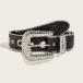 素材 本革 ※牛革<br>サイズ<br>全長:約109cm <br>ピンから最短穴まで:約77cm<br>ピンから最長穴まで:約97cm<br>ベルト幅:約25mm<br>革の厚み:約3.5mm<br>【バックル】<br>縦:約43mm<br>横:約53mm<br>厚み:約6mm<br>生産国 中国製<br>カラー展開 BLACK ブラック DARK BROWN ダークブラウン<br><br>近年、いろいろなブランドから登場しているトレンドアイテムのウエスタンベルト。<br>当店にも25ミリの細幅で使いやすいデザインのウエスタンベルトが入荷♪<br>ウエスタンベルトとはバックルや剣先に装飾金具を取り付けたベルトの総称です。<br>主役となるバックルとデザインのポイントとなる剣先やベルトループには放射状のデザインを取り入れ、存在感とボリュームのあるベルトに仕上げています。<br><br>注意<br>■商品画像はできる限り実物を再現するよう心掛けておりますが、ご利用のモニター、環境等により、実際の色そのものとは若干違う場合がございます。<br>■革製品は天然素材を使用している為、色、質感など若干の個体差がございます。ご了承の上、お買い求めください。<br>■濡れや摩擦により多少の色落ちが生じる可能性がございますので淡色の衣料との組み合わせにご注意ください。