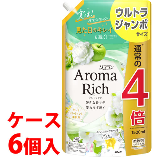《ケース》 ライオン ソフラン アロマリッチ エリー ナチュラルブーケアロマの香り つめかえ用 ウルトラジャンボサイズ (1520mL)×6個 柔軟剤 送料無料