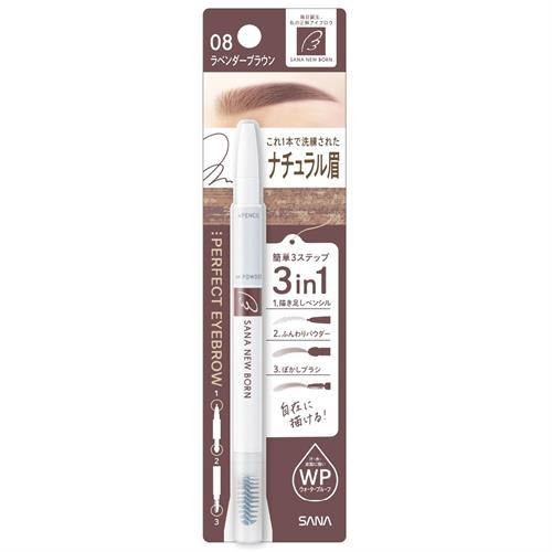 【ゆうパケット配送対象】[常盤薬品]サナ New Born(ニューボーン) パーフェクトアイブロウ 08 ラベンダーブラウン 1個(アイブロウペンシル パウダー ブラシ 3i