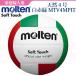 バレーボール・4号・試合球・天然皮革・ママさんバレー●メーカー:モルテン/molten<br>●商品名:ソフトタッチ(白赤緑/12枚貼り)<br>●素 材:貼り・天然皮革<br>●サイズ:4号球<br>●生産国:タイ製<br>●補強層綿布仕様<br>●検定球<br>●小学校(軽量)・中学校・家庭婦人/円周62〜64...