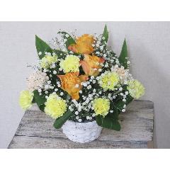 ビタミンカラーのアレンジメントです。季節の花でアレンジします。