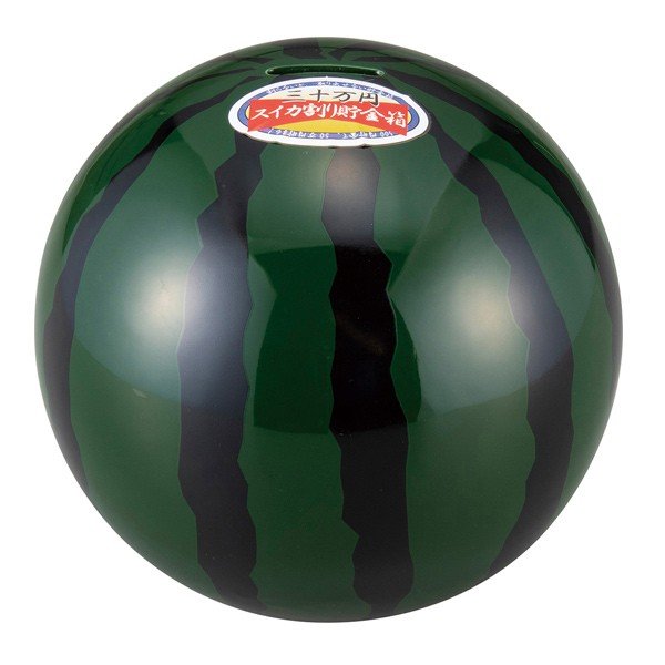 サイズ/約幅17×奥行17×高さ16cm<br>重量/約500g<br>内容量/1個<br>材質/磁器<br>生産国/中国製<br><br>●一度貯金すると取り出せない陶器の貯金箱です。<br>●500円玉で満タンにすると約50万円貯まります。<br>●いっぱいになったらスイカ割り!安全な場所で陶器のス...