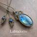 大きめサイズのルースで力強く印象的なマクラメペンダント。<br><br>光の加減や見る角度で、ゴールドやブルーグリーンに輝く幻想的なシラーが美しい良質で大きめのラブラドライトをセレクト。<br><br>上部にも6mm玉の良質のラブラドライトと、エンド部分は濃い青色が特徴のアズライトを組み合わせてます。<br><br>美しいラブ...