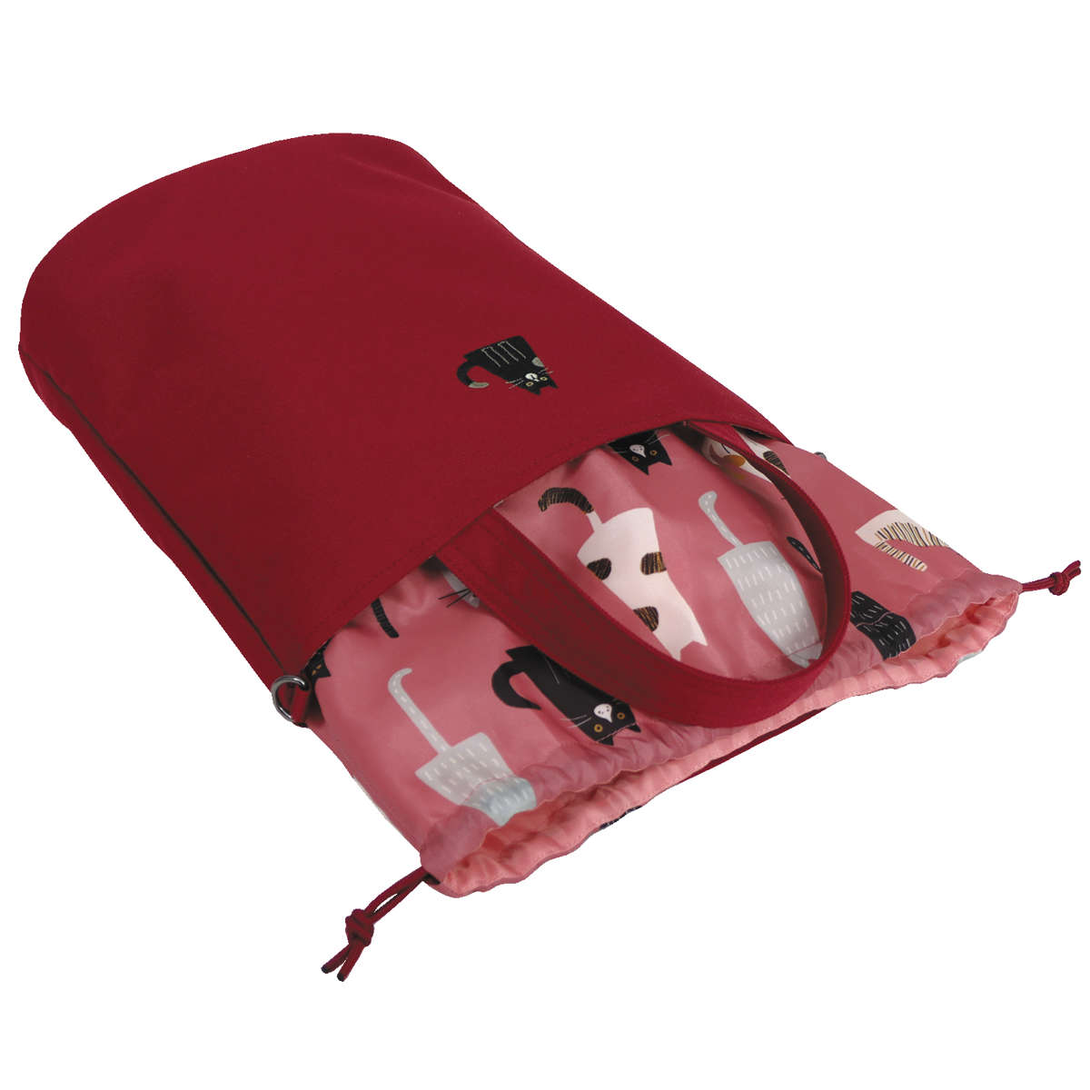 サイズ/約幅33×奥行15×高さ27.5cm<br>肩紐:最長約130(cm)<br>内容量/1個<br>材質/ポリエステル<br>生産国/中国製<br><br>●ショルダーでも手持ちでも使える2wayバッグです。<br>●巾着×バケツ型が可愛いバッグです。<br>●ネコの刺繍やネコプリントされた巾着部...