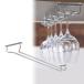 キッチンやカウンター天板の下に取り付けるワイングラス吊り下げラック。ボウル部が下を向くため保管時にホコリがつきにくい。【商品の詳細】サイズ:507x115x40 (mm)、国際規格テイスティンググラス(最大口径65)約7脚収納可。、素材:ステンレス、ビニール袋入り、お客様設置商品(固定ねじ付属)