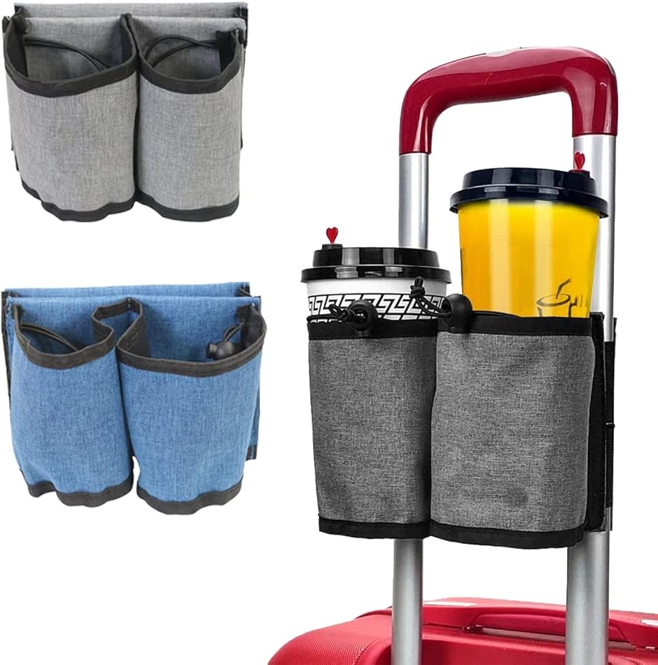バリエーションコード : 2B2LQSU9TI<br>旅行などの遠出に活躍する、スーツケース用のカップホルダーです。<br>手持ちのスーツケースのキャリーハンドルに簡単にかけることができます。<br>荷物で両手が塞がっている時に大活躍間違いなしの便利グッズ。<br><br>カップホルダーは2つあり、カップホルダーの後ろにはポケットが付いて...