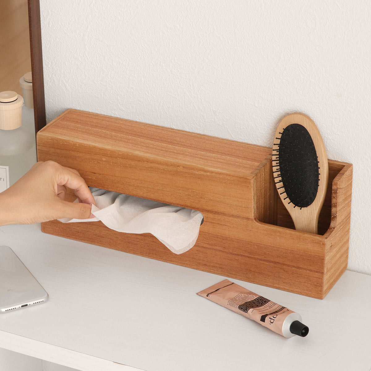 収納とインテリア性に優れたナチュラルな味わい。天然木を使用しているのでひとつひとつ木目の模様が違います。<br><br>市販のボックスティッシュはカラフルなものが多く生活感が出るから置きたくない…<br>エコなソフトパックティッシュもそのままだとちょっと…などのお悩みもナチュラリーティッシュボックスに入れれば解決!<br><br>ナチュラ...