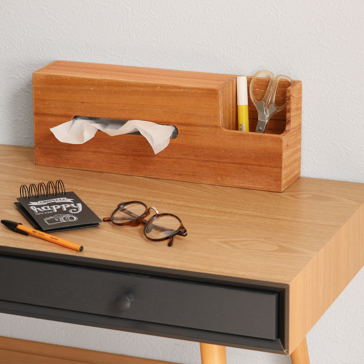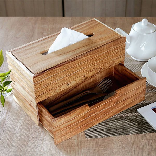 サイズ/約幅28.5×奥行13.5×高さ15cm<br>ティッシュケース内寸:約幅26.5×奥行12×高さ7cm<br>引き出し内寸:約幅25×奥行11×高さ6(cm)<br>内容量/1個<br>材質/チェリーウッド<br>カラー/ナチュラル<br>生産国/フィリピン製<br><br>●ナチュラルな風合...
