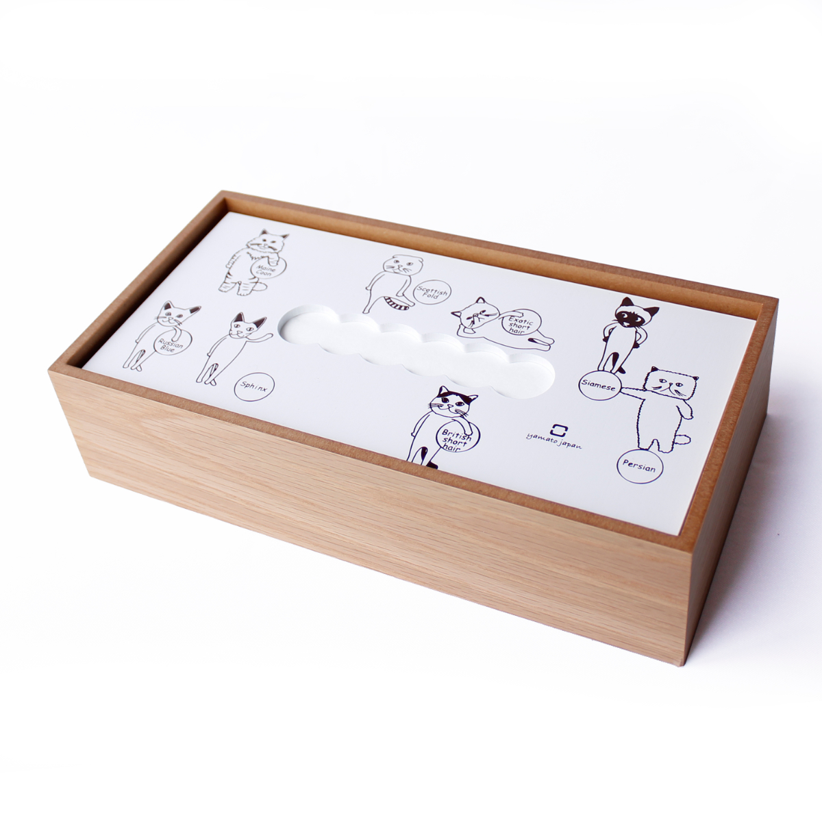 サイズ/約幅26.5×奥行13.5×高さ6.5cm<br>内容量/1個<br>材質/ナラ突き板、MDF<br>生産国/日本製<br><br>●人気のネコキャラクターでシンプルなデザインのティッシュケースです。<br>●蓋は中身が減ると下にさがる載せ蓋タイプで取り出しやすいです。<br>●天然木ならではの温かみも感じ...