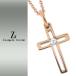 透かし模様でクロスを描いたサージカルステンレス製ネックレスです。<br>中心にはジルコニアが輝き、全体をピンクゴールドカラーでコーティング!<br>小さめのデザインながら、トップのメタリックな輝きとジルコニアの清楚な煌きがアナタの胸元を上品に演出!<br>チェーンは3段階に長さを調節してご利用頂ける丸カン付き!<br><br>商品データ&...