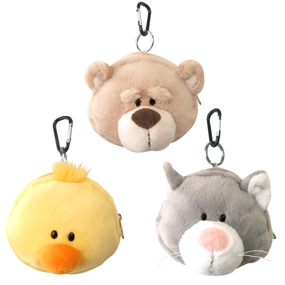 サイズ/ベア:約幅12×奥行7×高さ15cmヒヨコ:約幅12×奥行6×高さ14cm<br>内容量/1個<br>材質/ポリエステル<br>種類/ベアー、ヒヨコ、グレーキャット<br>生産国/中国製<br>対象年齢/6歳以上<br><br>●カラビナ付きで取り付けやすいミニポーチ<br>●コインや小物が入る...