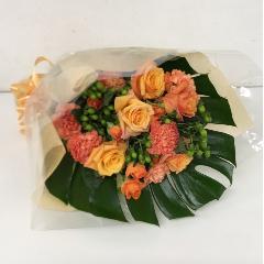 オレンジ色のお花を中心にボリュームたっぷりの花束です。オレンジは楽しい・社交的を表現する色。両手いっぱいの気持ちをお届けします。大切な方への贈り物に・・・