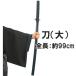 本体は木製・鞘の部分は艶あり塗装となっています。鍔・柄・鞘尻は、プラスチックメッキ仕上げです。 【セット内容】刀×1本 【サイズ】全長:約99cm(鞘におさめた状態) ※ビニール開封後の商品は、不良品の場合を除き、返品・交換ができません。 【関連キーワード】 時代劇,じだいげき,時代劇衣装,和装,コスプレ,コスチューム,着物