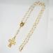 Y字ペンダント、十字架下がり、金色。真鍮錫合金に金メッキをしたペンダントです。6mmプラスチックパール9ピン繋ぎで、プラスチックパール部分の長さは約60cm、下がり部分は約8cm。他のデザインは #飛鳥庵Y字ペンダント で検索して下さい。