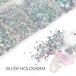 キラキラのオーロラ加工ホログラム<br>光が当たると虹色に光を反射してとても綺麗です<br><br>12gの大容量なので、クラフトにネイルアートにいろいろご使用いただけます。<br><br>ITEM DETAIL<br>商品名 シルバーホログラム オーロラ 11種<br>内容量 12g<br><b...