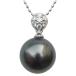 ネックレスペンダント 黒真珠パール pt900 プラチナ ネックレス ダイヤモンド ジュエリー<br>神秘的なグリーンカラーのタヒチ黒蝶真珠深い輝きを持ち、<br>劣化しにくいのが特徴です。本商品は、ほぼ真円に近い<br>セミラウンドで、身につけやすい10mm珠を使用しています。<br>ダイヤモンド7石が、きらきら輝き胸元を美しく演出してくれ<...