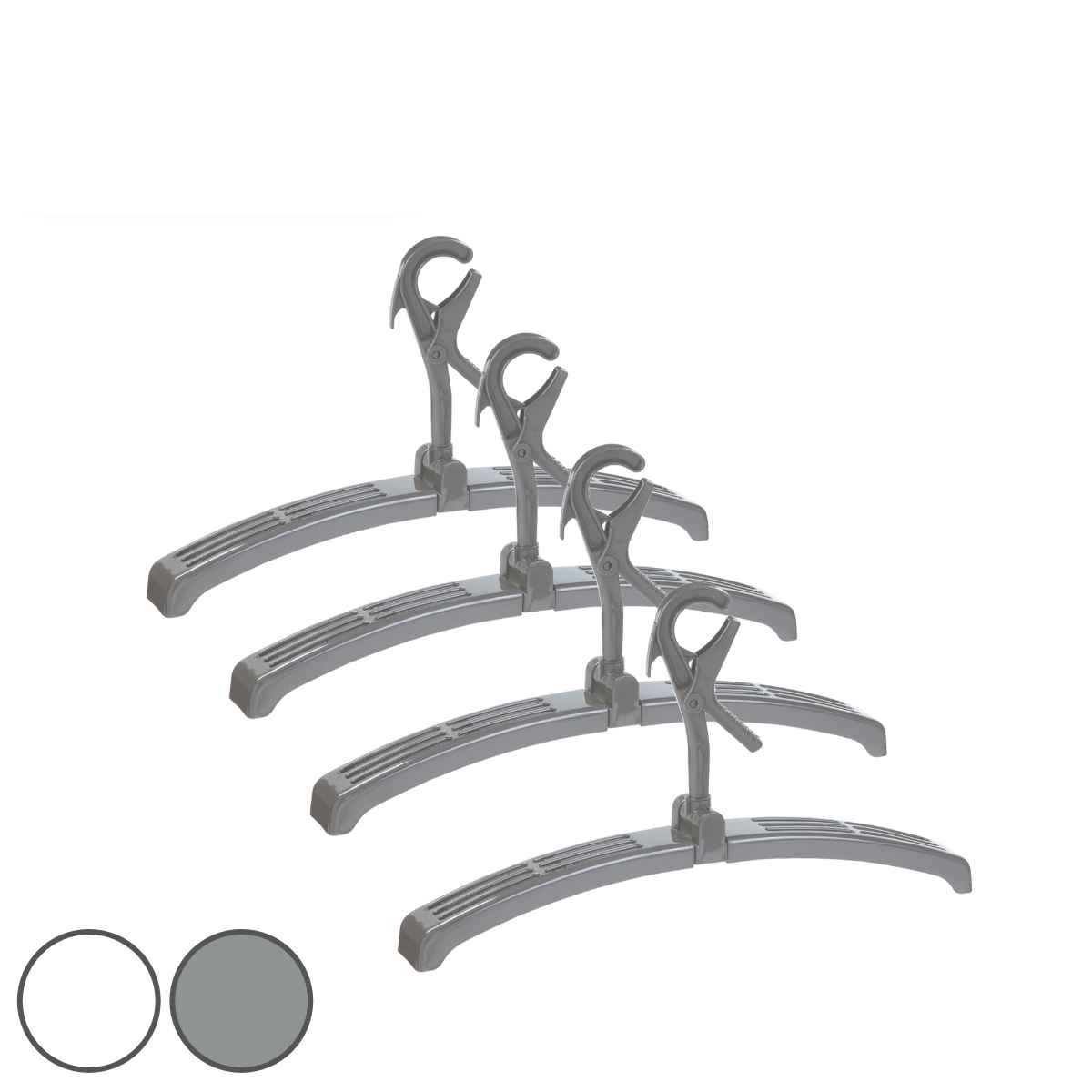 サイズ/約幅44.5×奥行4.7×高さ20.6cm<br>伸長時:約67cm<br>内容量/4本組<br>材質/ハンガー:ポリプロピレン<br>バネ:鋼線(鉄)<br>種類/ホワイト、グレー<br>生産国/日本製<br><br>●トレーナーなどを肩ラインに沿ったカーブで型くずれを防止します。<br...