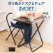 必要な時にサッと出して使える、折り畳みデスクとチェアの2点セットです。<br>折り畳み状態で2つ重ねても15cmのすき間に収納可能、持ち運びもラクラク。<br>床への傷付き防止の脚ゴムが付いており、滑り止めの効果もあります。<br>ちょっと座ってPC作業やメイク、お食事・ミシン掛けなど様々なシーンで活躍します。<br>※完成品でお届け致します。<...