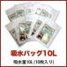 吸水バッグ10L 吸水量10L(10枚入り)の商品情報<br><br>吸水バッグの特徴<br>水に接触すると急速に水を吸水し膨張する。<br>吸水スピードが極めて早く、緊急時に、速やかな対応が可能 極めて軽量しかも嵩張らず、保管持ち運びが容易 インテリジェントビル、コンピュータルーム床下、発電所等の出水事故対策用として、漏水センサーと併用させた新しい...